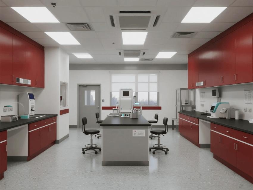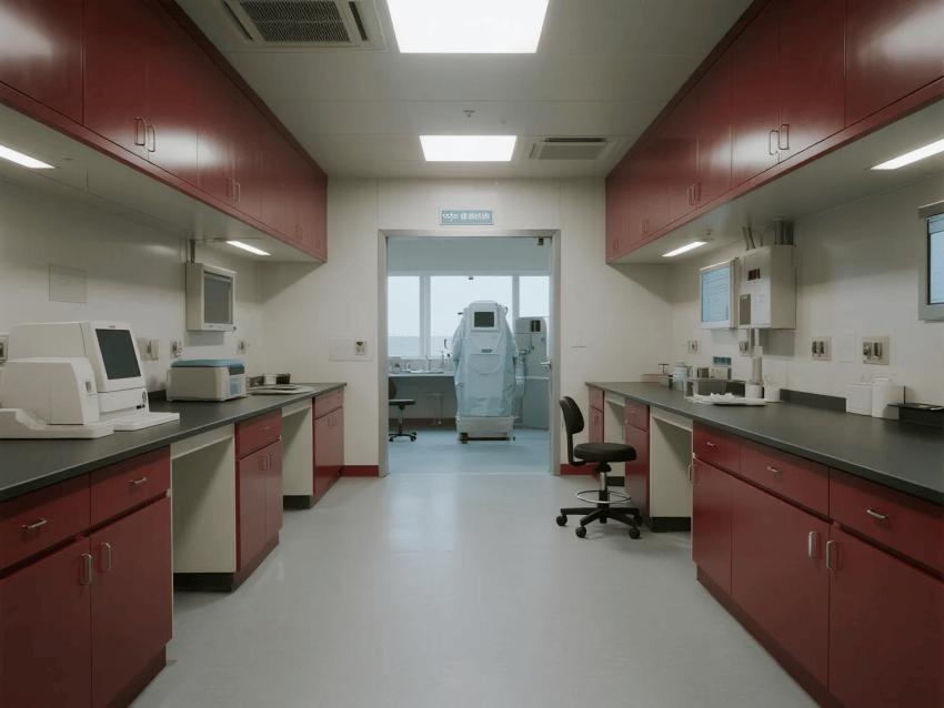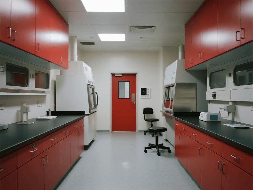本實(shí)驗(yàn)室嚴(yán)格遵循BSL-3級(jí)生物安全標(biāo)準(zhǔn),通過(guò)深紅彩鋼板與淺灰環(huán)氧地坪的強(qiáng)烈視覺(jué)對(duì)比,構(gòu)建安全高效的病原體研究空間。