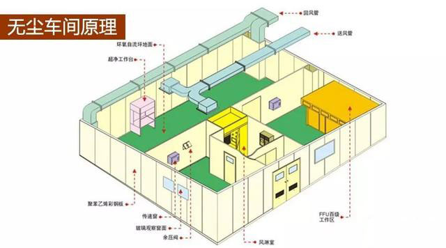 達到要求的這樣一個穩定生產環境即稱為無塵車間,也叫潔凈廠房、潔凈室(Clean Room)、無塵室。無論外部條件怎么變化,其室內均能維持符合原先設定要求的潔凈度、溫濕度及壓力等性能。