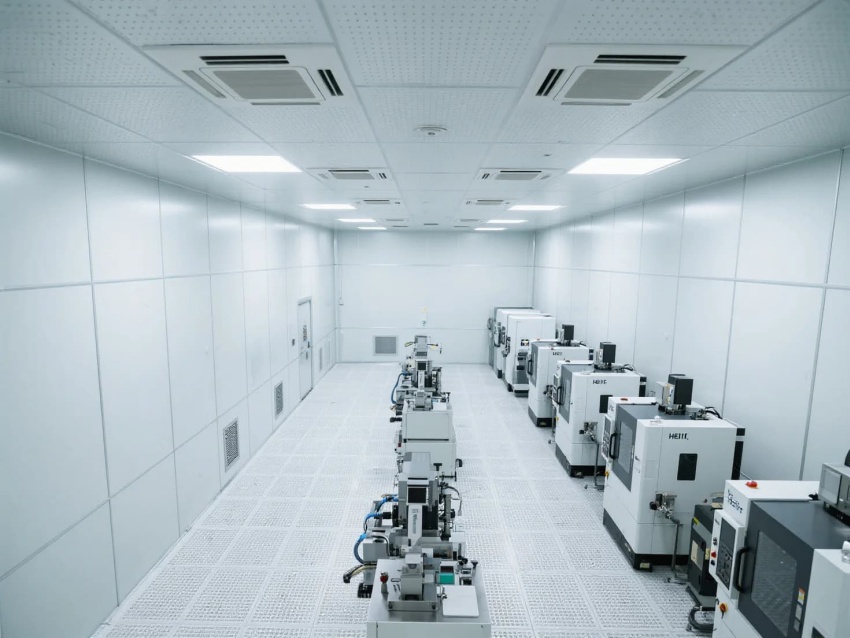 模塊化功能單元:劃分微米級加工區(qū)(黃光照明)、光學(xué)檢測區(qū)(黑箱設(shè)計)、物料緩存區(qū)(負(fù)壓隔離)
