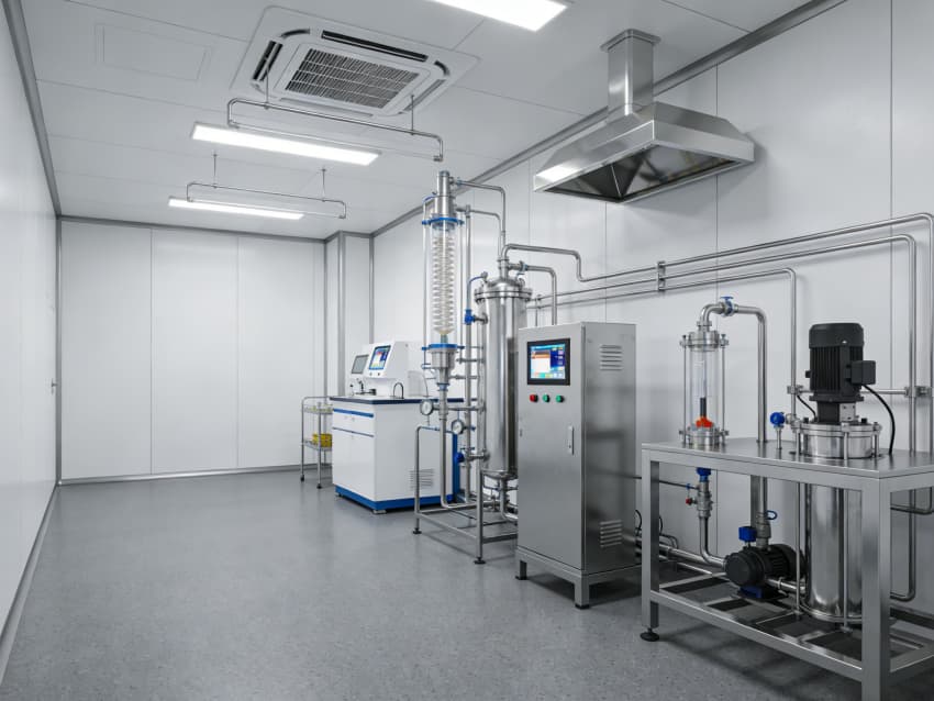 白色墻面采用食品級潔凈抗菌涂層,推行無縫拼接工藝,陰陽角圓弧倒角設(shè)計消除清潔死角,潔凈度可達(dá)Class 7級標(biāo)準(zhǔn)。車間科學(xué)劃分抗體表達(dá)區(qū)、偶聯(lián)反應(yīng)區(qū)、純化區(qū)等功能區(qū)域,各區(qū)域配備獨(dú)立層流凈化與負(fù)壓防護(hù)系統(tǒng),偶聯(lián)區(qū)預(yù)留精密溫控與惰性氣體接口,純化區(qū)設(shè)置無菌物料傳遞窗口,全方位規(guī)避交叉污染,保障研發(fā)生產(chǎn)的安全性與合規(guī)性。