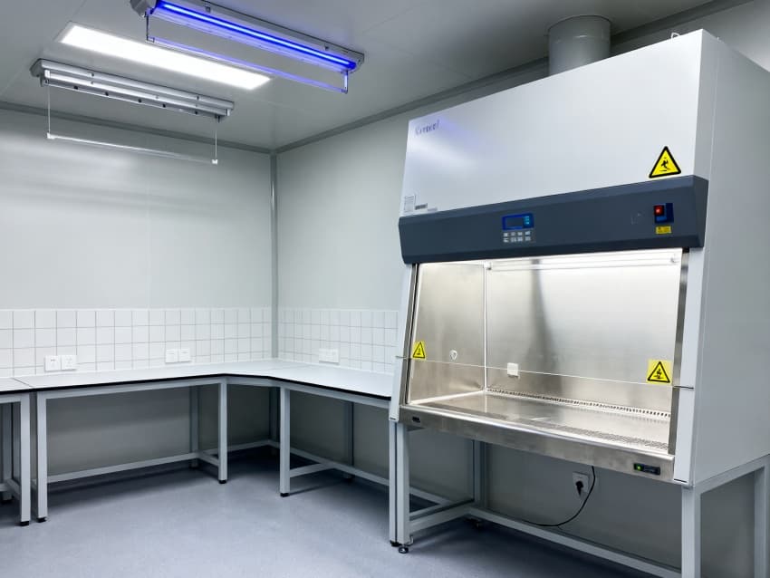 圍護結(jié)構(gòu)選用304不銹鋼抗菌墻板與無縫PVC地面,轉(zhuǎn)角圓弧處理無衛(wèi)生死角,配套紫外消毒系統(tǒng)與恒溫恒濕控制(22±1℃,50±5%RH),全面滿足微生物研究的無菌環(huán)境要求。