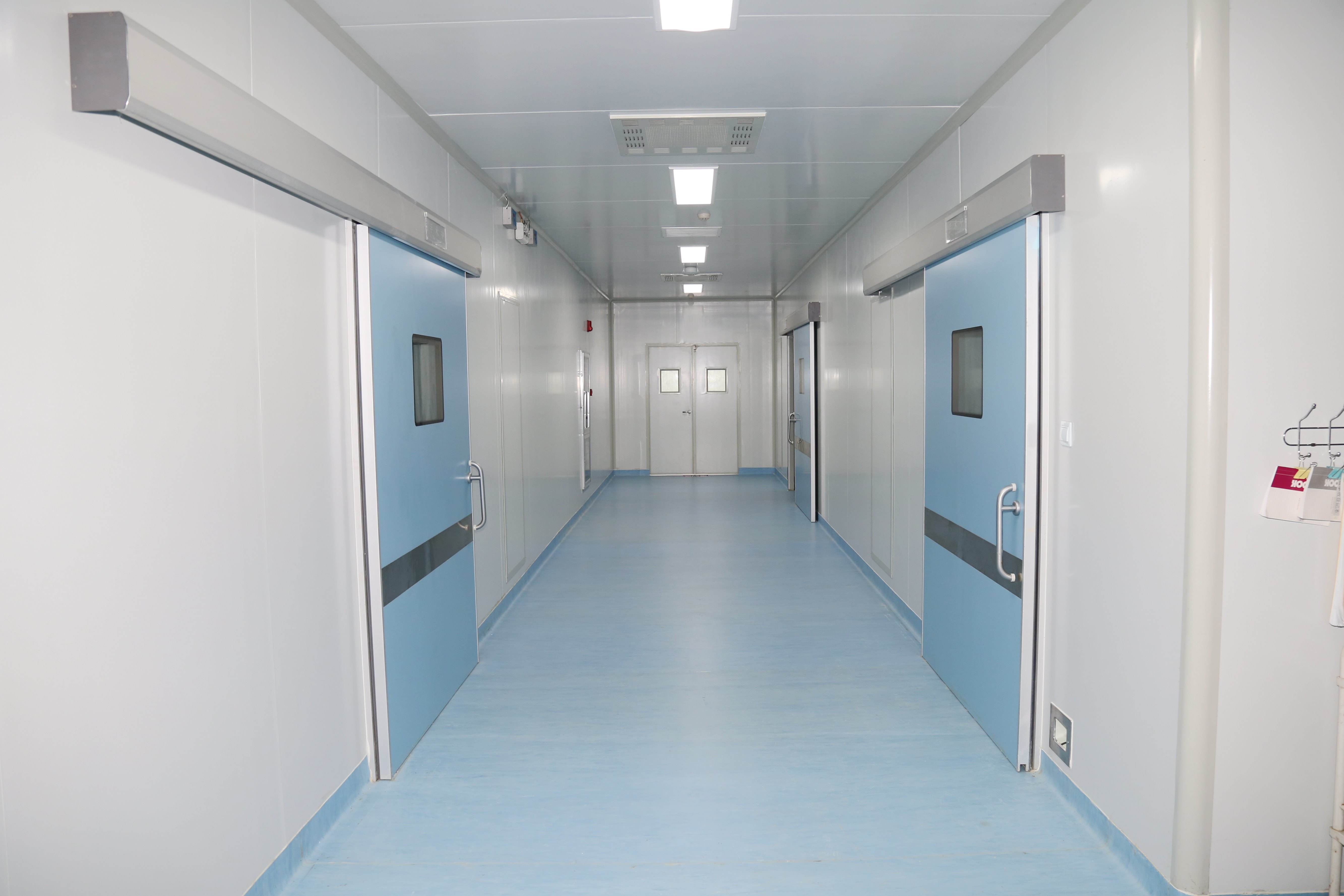 醫療整形美容院層流手術室三間,其中一間千級手術室凈化系統,兩間萬級潔凈手術室,層流手術室建筑施工面積260㎡(含相應輔助用房功能間,輔助用房為十萬級凈化),板材采用藍色玻鎂潔凈板,地面搭配進口PVC,具有抗碘伏、耐磨、防滑、易清洗功能;凈化機組采用領先技術的醫凈恒溫恒濕空調,搭配PLC控制系統、高端觸摸屏控制器,具有自動加濕除濕、自動調節溫度、故障報警功能;已取得第三方檢測公司的檢測報告;手術室潔凈走廊,搭配藍色潔凈板與進口品質pvc地板;墻體安裝不銹鋼防撞帶,有效保障了推手術病人的過程中發生的墻體擦掛;醫用自動門定制同色,配備光感應防夾功能、內外腳踏感應功能,電機采用進口機芯,啟動聲音低。